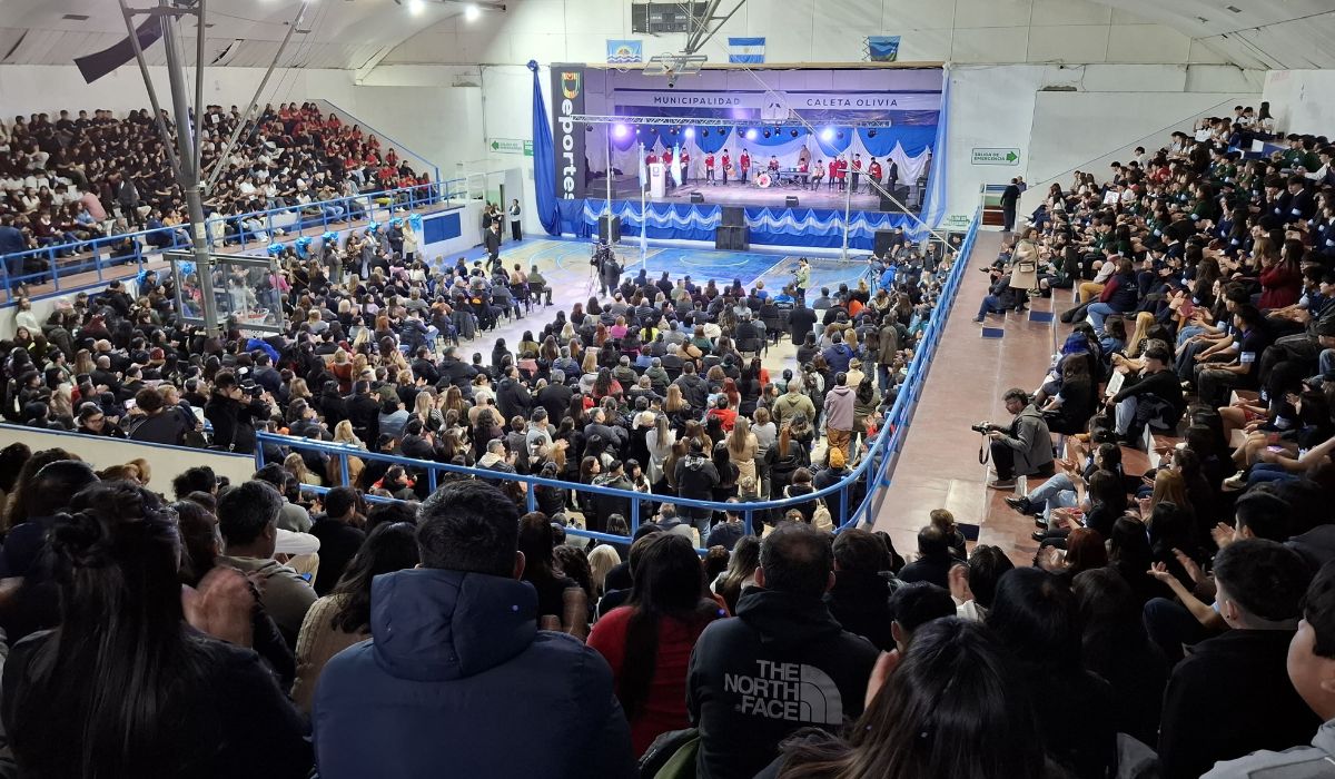 La ceremonia se concretó en instalaciones del Complejo Deportivo Municipal “Ing. Knudsen”, con la presencia de autoridades educativas, representantes provinciales y municipales y la participación de todas las escuelas secundarias de la ciudad, Cañadón Seco y Jaramillo, contemplando los turnos mañana y tarde del nivel.