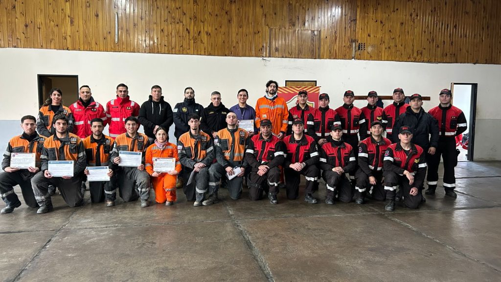 La formación fue desarrollada por la División Grupos Especiales Zona Sur, en las instalaciones del Cuartel 24 de Bomberos de Río Gallegos, y contó con la participación de 10 brigadistas, acompañados por un equipo de 14 instructores especializados.