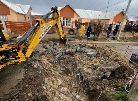 En este marco, en Puerto San Julián, se realizaron trabajos de reparación de cañerías, en distintos sectores de la localidad. Estas tareas se desarrollaron en coordinación con el personal operativo del distrito de Puerto Santa Cruz, que colaboró con el envío de un martillo neumático y su maquinista, quienes trabajaron junto al equipo local de Saneamiento.