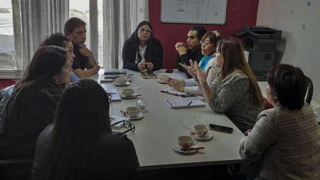 Posteriormente, en la localidad de 28 de Noviembre, se desarrolló una jornada de trabajo en articulación con funcionarios municipales. Participaron la secretaria de Desarrollo Social, Stella Maris Muñoz; Yohana Bahamonde, del Departamento de Integración Comunitaria; Beatriz Choque, jefa de Departamento de Niños, Niñas y Adolescentes; el doctor Aníbal Corti; la psicóloga Leila Ponce; la psicóloga social Yesica Jacobi y la trabajadora social Yanina Bilbao Gaitán.