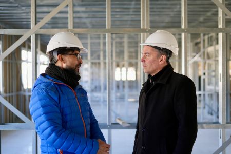El jefe de Gabinete de Ministros de la Provincia, Daniel Álvarez, junto a la directora Regional de Educación, María Mercedes Barrionuevo, recorrió el edificio en construcción. En la oportunidad, fueron acompañados por autoridades educativas y la comunidad escolar.