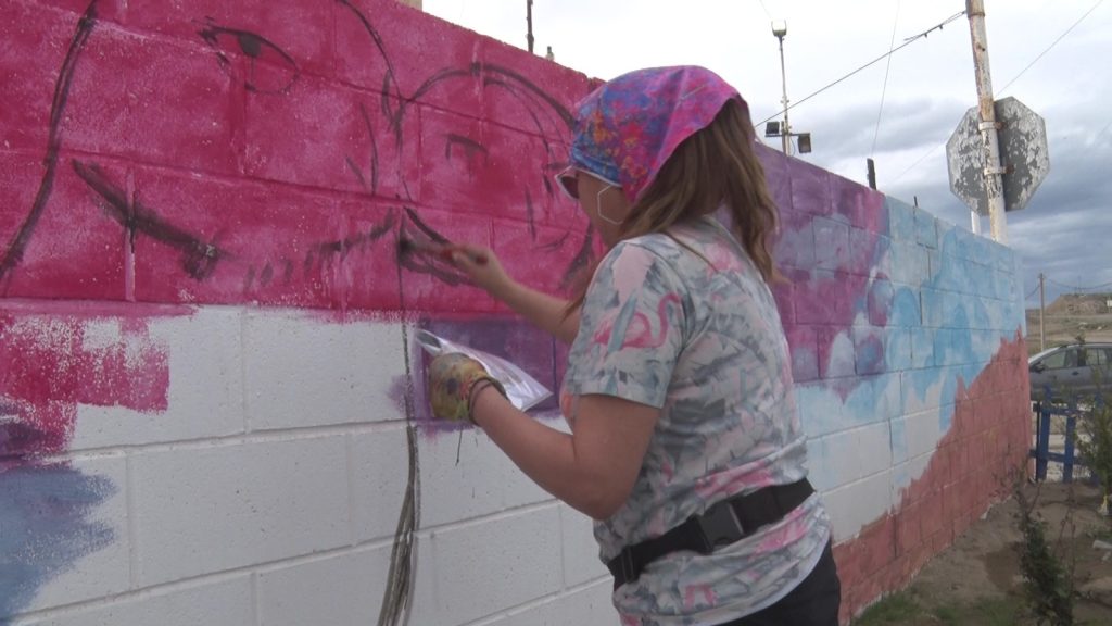 La artista plástica Violeta Aragón comenzó a trabajar en un mural de fauna autóctona en la entrada del predio de disposición de residuos, con el objetivo de transformar la fachada del espacio al que acceden diariamente los vecinos.