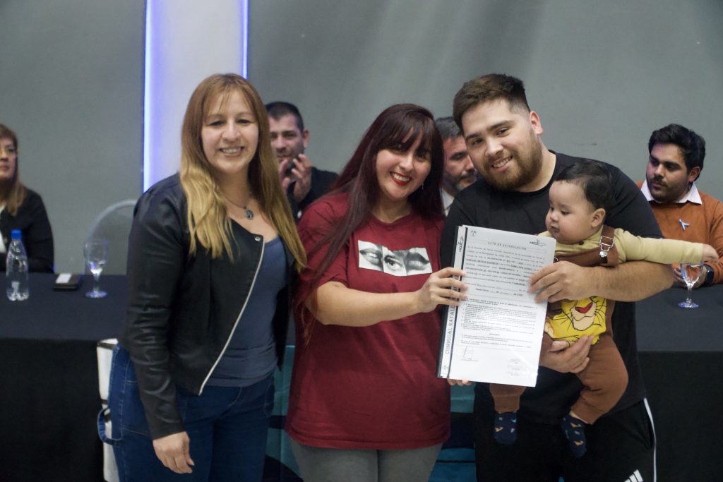 Encabezaron del acto el jefe de Gabinete Mariano Mazzaglia, el secretario de Planificación Lucas Haidamaschuk, la supervisora de Tierras Patricia Reynoso, la directora de Tierras Yanina Labado, el presidente del Honorable Concejo Deliberante Facundo Belarde y la concejal Iris Casas. También acompañaron los funcionarios de todas las áreas que compartieron con los vecinos la entrega de los instrumentos legales.