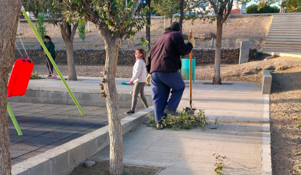 En esa línea, y para acompañar las labores habituales que ejecuta el municipio, este lunes 30 de marzo por la mañana se realizaron trabajos de acondicionamiento general, corte de malezas, barrido y limpieza en la plaza “Malvinas Argentinas”, ubicada en el barrio Parque, sitio que será escenario de dos actividades centrales.