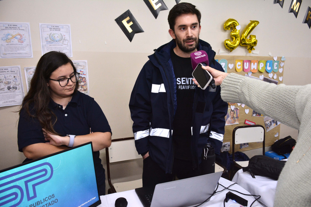 Uno de los ejes principales fue la concientización sobre el uso seguro y eficiente de la energía eléctrica. Desde el área técnica, Andrés Nemirosky y Carla Bauer brindaron una charla introductoria sobre seguridad eléctrica en los hogares y hábitos de consumo responsable.